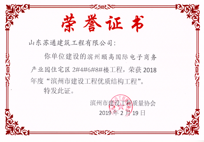 山東蘇通建筑工程有限公司,創建于2009年8月。目前擁有房屋建筑工程施工總承包壹級、市政公用工程施工總承包叁級、水利水電工程施工總承包叁級資質,同時還具有建筑裝修裝飾工程專業承包貳級、消防設施工程專業承包貳級、鋼結構工程專業承包叁級、建筑機電安裝工程專業承包叁級等專業承包資質。 公司總部坐落于山東省濱州市濱城區黃河十二路877號,現有辦公面積約2000平方米,機構設黨支部工會辦公室、總經理辦公室、綜合辦公室、工程管理部、經營預算部、資產財務部、材料設備部、運行管理部、法律事務部等多個職能部門。公司管理體系已經通過了GB/T 19001及GB/T 50430質量管理體系、GB/T 24001環境管理體系(EMS)、GB/T 28001職業健康安全管理體系(OHSMS)等體系的認證。 公司承建完工了濱州市建大教師之家、建大清怡苑、香格里拉水岸綠城住宅小區、雙泰建大城、曲阜崇德公館住宅小區、北海新區御景藍灣住宅小區、沾化德榮國際華城住宅小區、惠民橄欖郡住宅小區等工程項目,目前在建工程項目有:濱州市頤高國際電子商務產業園住宅小區項目、濱州市東盛國際項目、高新區建大中央華府住宅小區項目、濱州市融匯新里程住宅小區項目、濱州市建大秦皇壹號住宅小區項目、濱州市森林花...